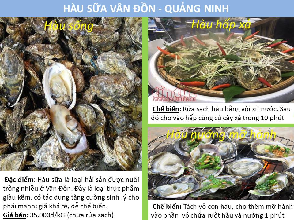 Chúng tôi xin đưa ra Thông tin các món ăn chế biến từ hàu sữa Vân Đồn - Quảng Ninh để du khách tham khảo như sau: