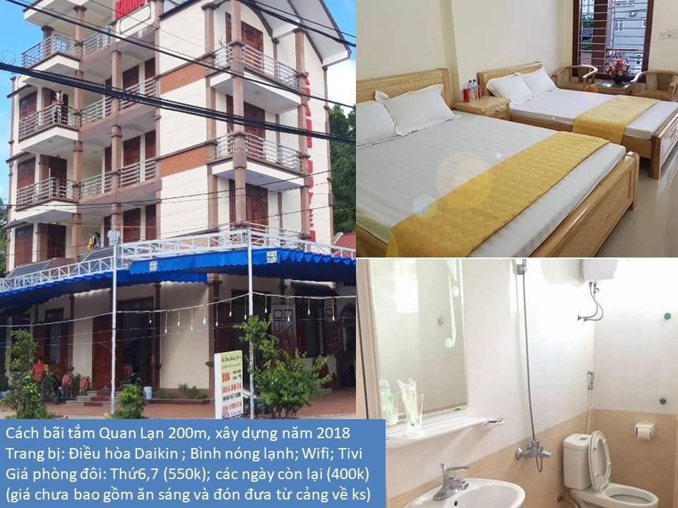 Đảo Quan Lạn - Minh Châu gần đây thu hút được rất nhiều du khách bởi có những bãi tắm cát trắng sạch đẹp, hoang sơ, người dân thân thiện, hiếu khách. Để đáp ứng nhu cầu lưu trú của du khách thì đã có khá nhiều nhà nghỉ được xây dựng. Chúng tôi xin đưa ra Thông tin các nhà nghỉ chất lượng tốt, giá rẻ gần bãi tắm Quan Lạn (đảo Quan Lạn - Minh Châu) để du khách tham khảo như sau: