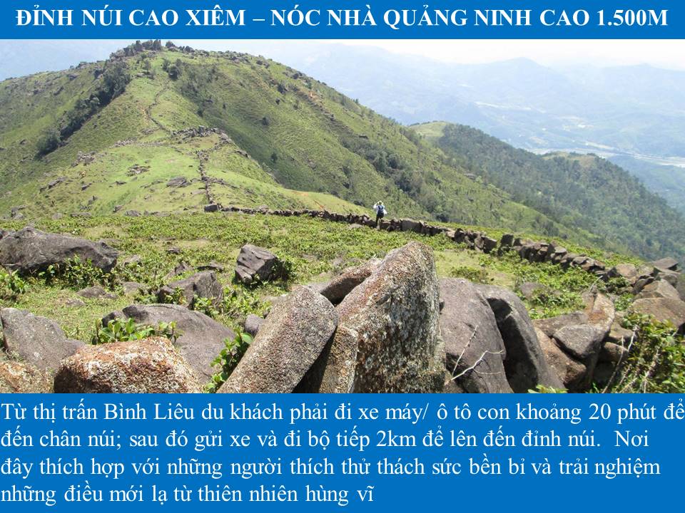 Bình Liêu là 1 huyện miền núi biên giới phía Bắc của tỉnh Quảng Ninh. Nơi đây được ví như Sa Pa thu nhỏ của tỉnh Quảng Ninh với cảnh quan núi đồi hùng vĩ, hoang sơ, khí hậu mát mẻ. Ngoài ra đến Bình Liêu du khách còn có cơ hội thưởng thức các món ăn ngon như: Gà đen nướng mật ong, thịt lợn rừng nướng, thịt thỏ xào lăn, rượu men lá Cao Ba Lanh ...